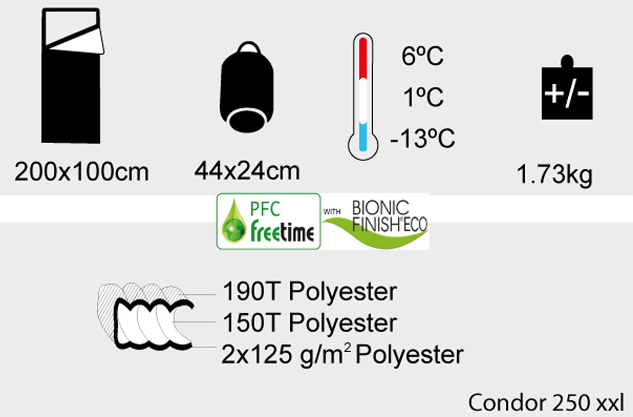 CONDOR 250XXL – Le Sac de couchage aux dimensions généreuses xxl – JUMELABLE – utile pour un bon camping