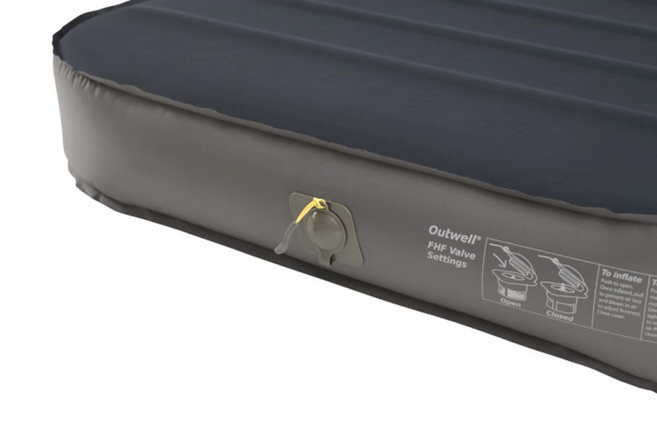 Le nouveau matelas autogonflant Dreamboat Double 7.5 cm offre un confort et une qualité exceptionnels pour deux personnes. Il est doté de la double valve haut débit plate d’Outwell® qui améliore le flux d’air tant pour le gonflage que pour le dégonflage. Ses morceaux de tissu statiques verticaux ne se plient pas sous la pression, ce qui facilite le gonflage. En effet, cela nécessite de pomper moins d’air. L‘épaisseur et la largeur particulièrement généreuses de ce matelas hautes performances s‘associent à un tissu extérieur extensible, pour vous offrir un confort de couchage unique.