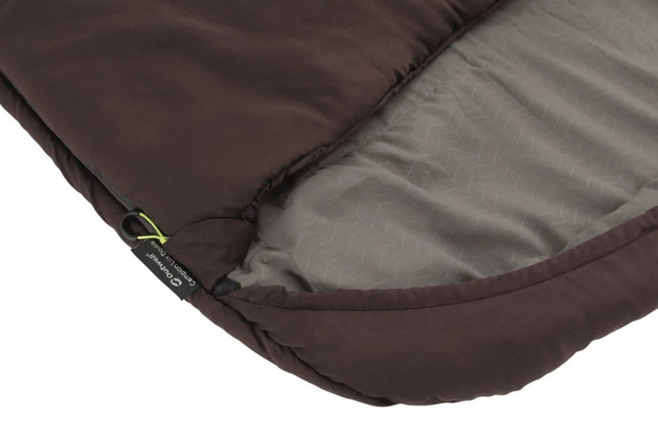 Rapprochez-vous avec le sac de couchage Outwell Campion Lux Double. Conçu pour deux personnes, ce sac de couchage doux et confortable comporte deux couches d’isolant pour que les couples de campeurs restent bien au chaud, ceci de la fin du printemps au début de l’automne. Respirant, disposant d’espace pour s’étirer et bouger, il offre une excellente qualité à un prix avantageux et vous pourrez l’utiliser pendant des années. Une petite poche intérieure vous permet de placer votre téléphone ou votre lampe de poche.