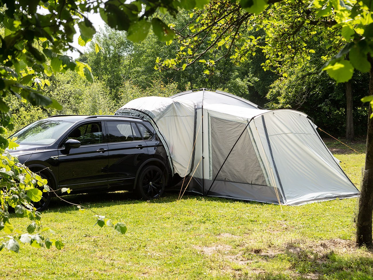 Grâce à son système de verrouillage réglable, le Pitea XL CROSS est compatible avec la plupart des voitures, SUV, CUV et minivans et se fixe sur le hayon de la voiture. Une liaison étanche entre la tente et la voiture est assurée par des sangles de tension robustes et généreusement dimensionnées, qui peuvent être fixées aux jantes, aux rétroviseurs, aux rails de toit ou à d’autres points du véhicule en quelques étapes simples.
