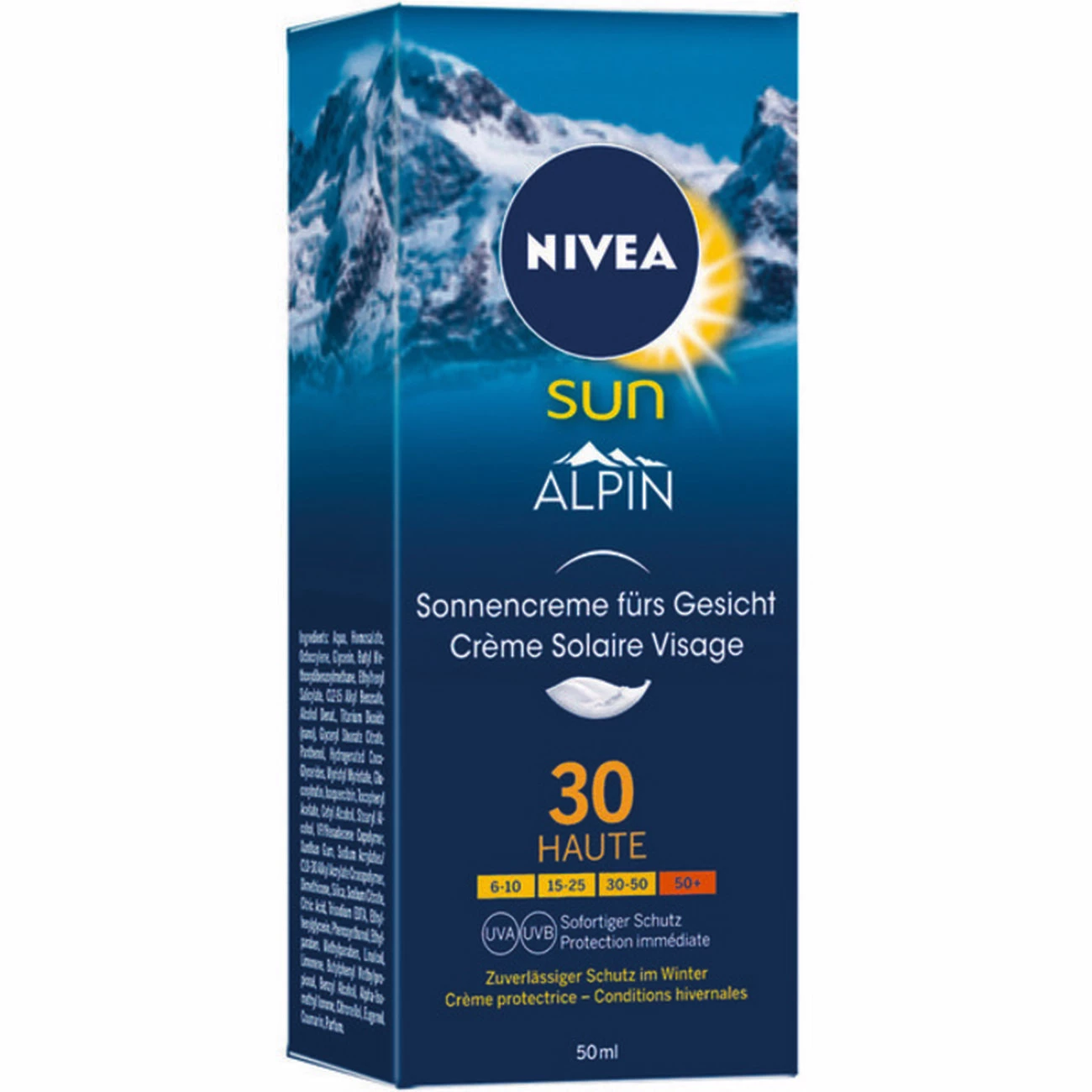 La Crème Solaire Visage Conditions Hivernales protège efficacement contre la réverbération intense des UV sur la neige et contre les effets nocifs du soleil en altitude – Protection équilibrée de filtres UVA/UVB – Protège immédiatement des méfaits du soleil et prévient efficacement le vieillissement prématuré de la peau – Formule qui soutient la barrière protectrice naturelle de la peau.