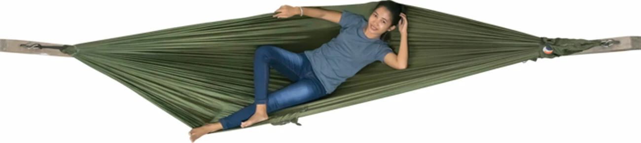 Si le minimalisme est important pour vous, comptez sur le hamac Compact. Fabriqué sans coutures, il est durable, confortable et facile à utiliser. Compact et léger, il est le compagnon idéal pour les excursions en randonnée. Production équitable. Tissu respirant et élastique. Lavable en machine à 30°C. Compact et léger (480g). Toile en nylon parachute de haute qualité (68g/m²). Tissu OEKO-TEX standard 100 (respecte la peau). Dimensions: 320 cm de long x 155 cm de large. Distance recommandée entre 2 points d’accroche de 3 m. Poids en charge max : 200 kg. Garantie 10 ans. Crochets inox inclus. Sac de rangement Express Setting Bag inclus. Poids: 480g.