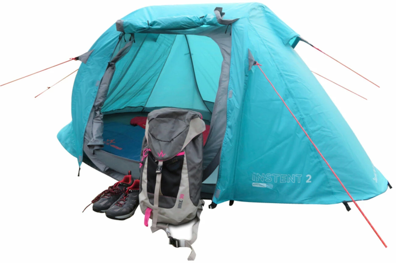 Tente autodéployable 2 places avec montage facile et instantanée, dotée d’un double toit pour plus de confort. Espace de couchage confortable (dimensions: L210cm x l120cm x H100cm) avec une belle hauteur sous plafond. Toit en polyester enduit ActivProtec 2000mm et anti-UV 50+. Structure auto-portante avec arceaux en fibre de verre. Compatible avec le système d’éclairage Kit LED Outdoor. Poids: 1600g.