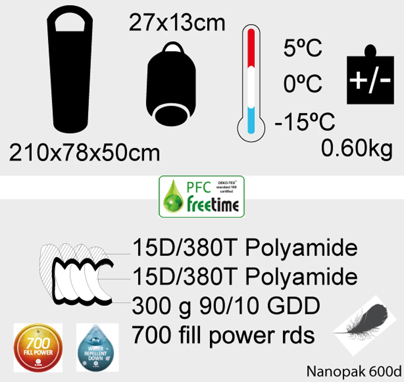 Pour un mini encombrement c’est le NANOPAK 600D qu’il vous faut – Sacs de couchage compact léger 0.600kg en forme momie- sac de couchage garnissage PLUME
