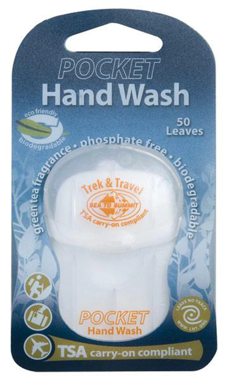 Accessoires accessoires divers sea to summit trek and travel pocket hand wash. Nos nouveaux nettoyants pour les mains de poche contiennent 50 feuilles de nettoyant sec, il n’y a donc aucun risque de fuite dans votre bagage et aucun risque de confiscation à l’aéroport.légères et compactes ces doses de nettoyants pour les mains sont idéales pour vos voyages au camping.elles sont également biodégradables afin de ne pas nuire à l’environnement.caractéristiques :- sans phosphate et sans parabène- biodégradable – léger parfum au thé vert- 50 feuilles de nettoyants pour les mains dans chaque pack- normes tsa spécifications :- quantité : 50 feuilles- poids : 15g