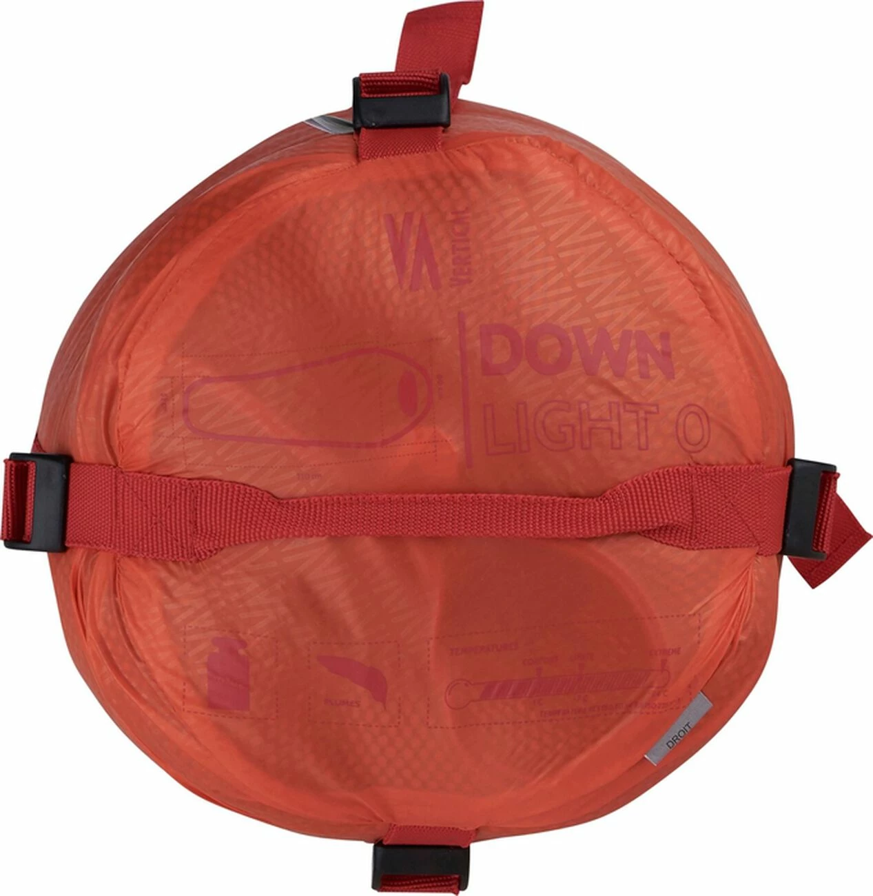 DOWN LIGHT 0 est un sac de couchage de forme sarcophage avec capuche ajustable. Col thermique. Zip double curseur avec bande anti-coincement, cordon de serrage élastiqué réfléchissant, poche intérieure. Sac de compression en tissu principal avec sangle de compression. Doublure: 100 % polyamide recyclé, léger et résistant. Laver à une température n’excédant pas les 30 °C. Pas de sèche linge. Pas d’adoucissant. Ne pas repasser. Pas de pressing.