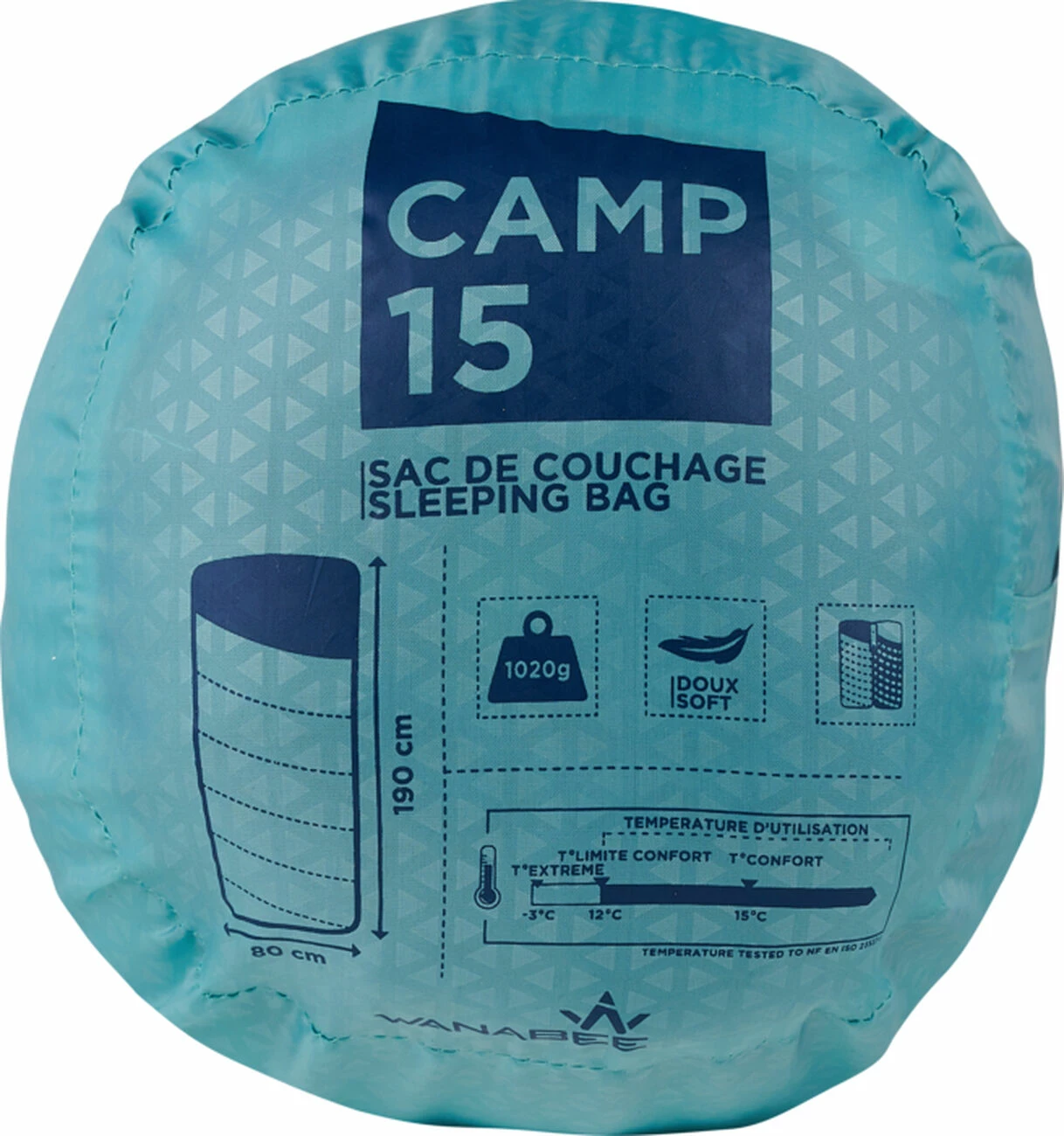 Le sac de couchage CAMP 15 est ultra-léger et peu encombrant. Très confortable et résistant il est idéal pour le camping et le bivouac estival. Ouverture droite. Doublure : Polyester poly-pouch 240T. Forme : Rectangulaire.